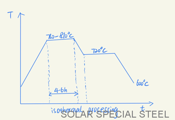 The heating temperature of spheroidizing annealing is generally 780-810℃, and there are two cooling methods: continuous cooling and isothermal transformation, as shown in the following 2 figures。