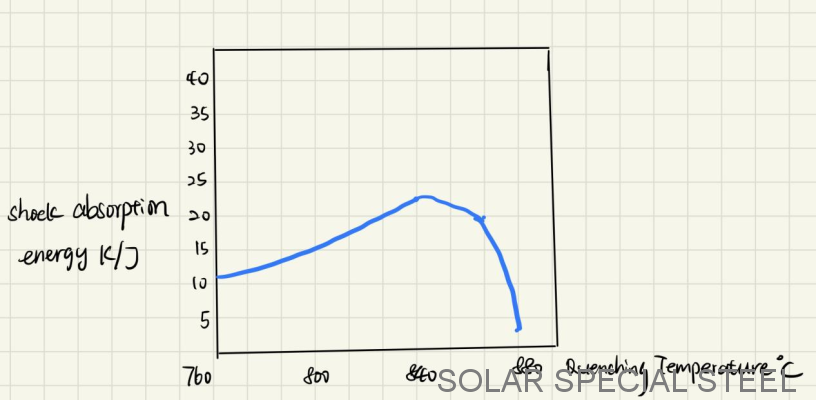 The selection of quenching and tempering process parameters has great influence on the service performance and fatigue life of bearings .The following figure shows the influence of quenching temperature on shock absorption energy and contact fatigue life of GCr15 steel.The quenching temperature of high carbon chromium bearing steel is 830-860℃. After oil quenching, fine and uniform grain size of grade 5-8 Austenite can be obtained. The content of C in the solid solution is generally 0.5-0.6%.Maximum hardness, bending strength and toughness can be obtained from such micro-structure properties.
